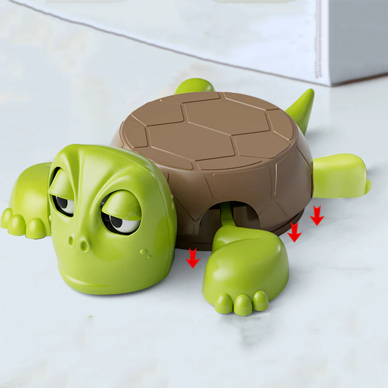 Turtle’s face changes and limbs lift when weight is applied—no batteries needed, just pure surprise!