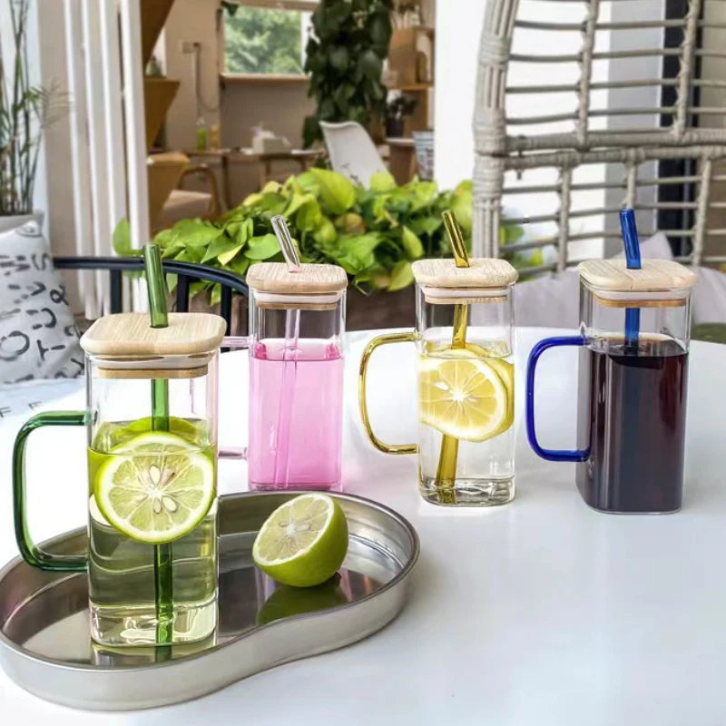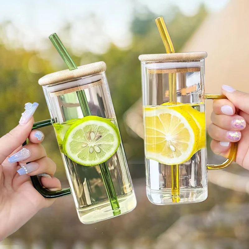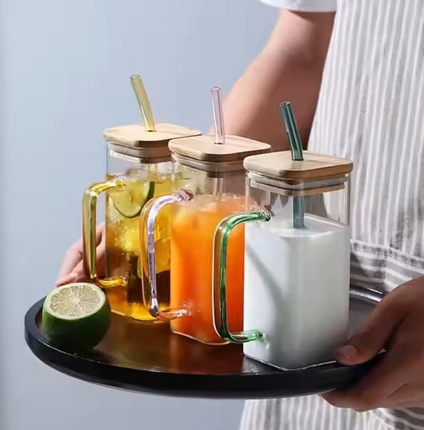 The Square Crystal Glass, made of durable silicone, offers a large volume to hold both hot and cold liquids without breaking. Its transparent design with a colored handle adds a touch of style, while the included lid and option for a glass straw make it versatile. Perfect for staying hydrated while working or studying this summer.